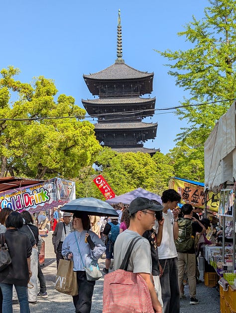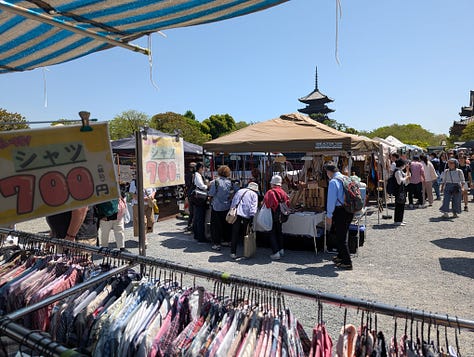 Pokud jste četli můj poslední newsletter o bleších trzích, tak přesně budete vědět, odkud toto krátké video pochází. Ano, jsou to trhy u chrámu Tódži.